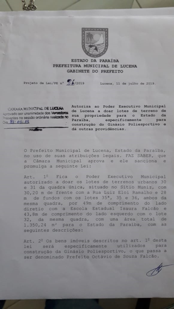 Nova praça esportiva na cidade levará o nome do ex-prefeito Octávio de Souza Falcão